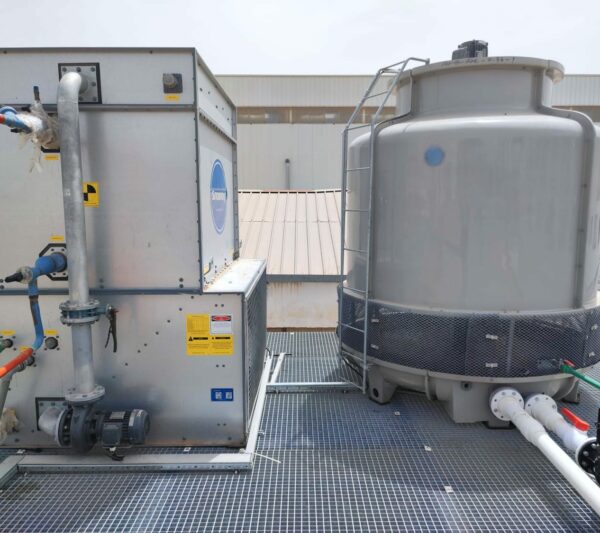 Les condenseurs à eau utilisent de l’eau pour éliminer la chaleur du fluide frigorigène. L’eau circule à travers des tubes où la chaleur est transférée, puis est rejetée, généralement vers une tour de refroidissement ou un autre système de dispersion de chaleur. Les condenseurs à évaporatifs utilisent l’évaporation de l’eau pour extraire la chaleur du fluide frigorigène. L’eau s’évapore à la surface du condenseur, absorbant ainsi la chaleur.